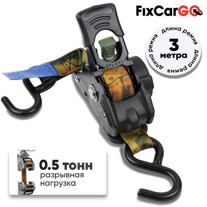 -Самозатягивающийся ремень крепления груза 25 мм, 3 м, крюк-крюк, цвет камуфляж